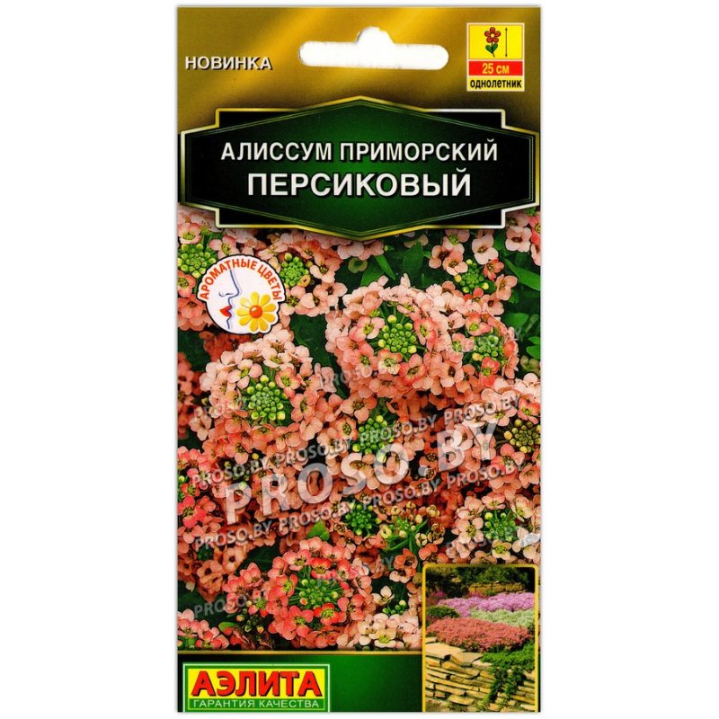 Миниатюрный однолетний алиссум редкого оттенка. Медовый запах его цветков привлекают полезных насекомых и наполняет сад изысканным ароматом. Высота пушистых кустиков около 15-25 см, в ширину они разрастаются до 25-30 см. Для растений характерны: очень ранний срок начала цветения, однородность и компактность габитуса на протяжении сезона. Это великолепная почвопокровная и бордюрная культура. Используется для оформления подпорных стенок, вазонов, каменистых горок и создании масштабных ландшафтных композиций применяются сплошные ковровые посадки алиссумов разнообразных оттенков.
