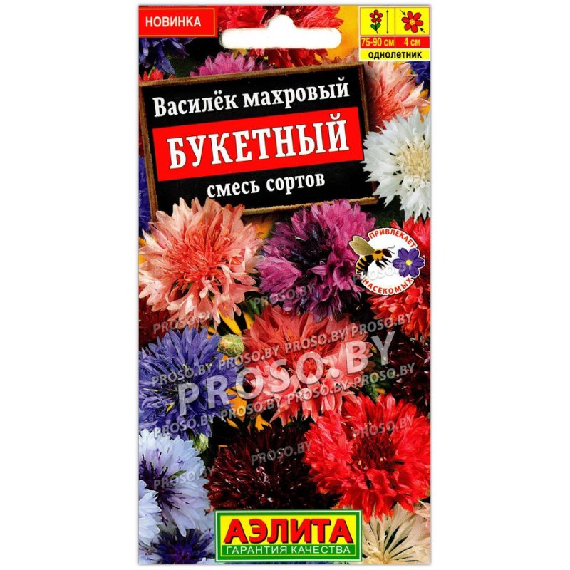 Красочная смесь васильков с махровыми крупными соцветиями диаметром 3-4 см. Этот неприхотливый однолетник можно сеять весной, как только позволит почва после схода снега. Цветение начинается рано, продолжается оно всё лето, вплоть до наступления осенних заморозков. Изящные, крепкие растения достигают высоты около 75-90 см. Они хорошо подходят для создания мавританского газона. Василёк – один из лучших медоносов, он украсит собой любой солнечный уголок сада. Смесь прекрасно выглядит в свежих букетах.