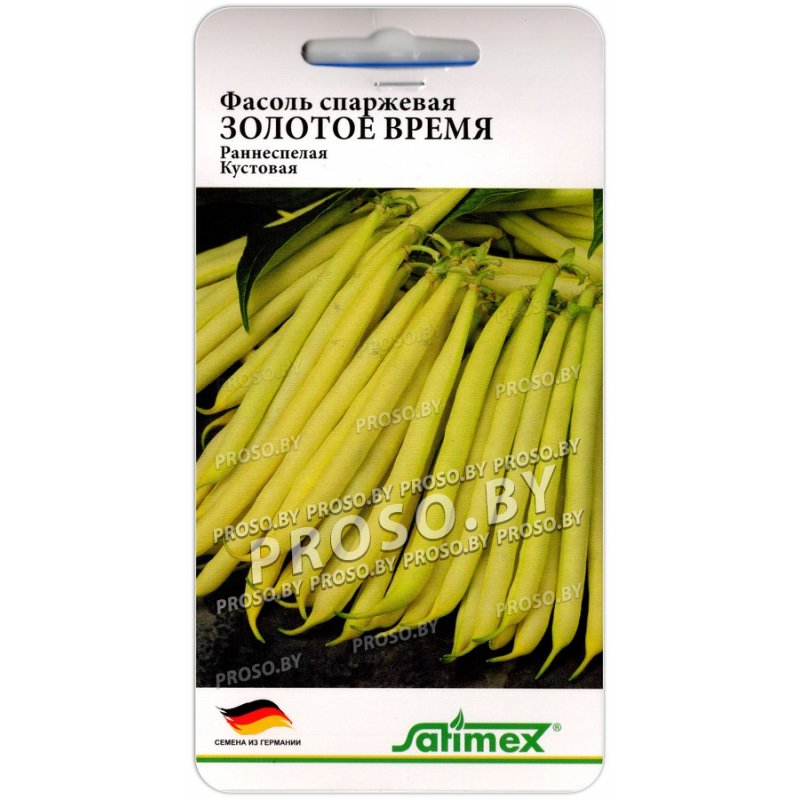 Находка для дачника и огородника, раннеспелый сорт, куст компактный, генетически лишен пергаментного слоя, имеет высокие вкусовые качества и мясистые бобы! Спаржевая фасоль Золотое время среднеранний (56-61 день от всходов) кустовой сорт высотой 40-45 см с желтыми бобами длиной 11-13 см, без жесткого пергаментного слоя и волокна от компании Satimex из Германии. Вкус оценивается как отличный, а стручки имеют сладковатую нежную, сочную мякоть. Её можно использовать как в молодом возрасте (лопатки), так и после полного созревания (семена). Этот сорт имеет отличные вкусовые качества, пригоден для заморозки и консервации. Сорт устойчив к болезням и нетребователен к почве, но не любит кислые участки.