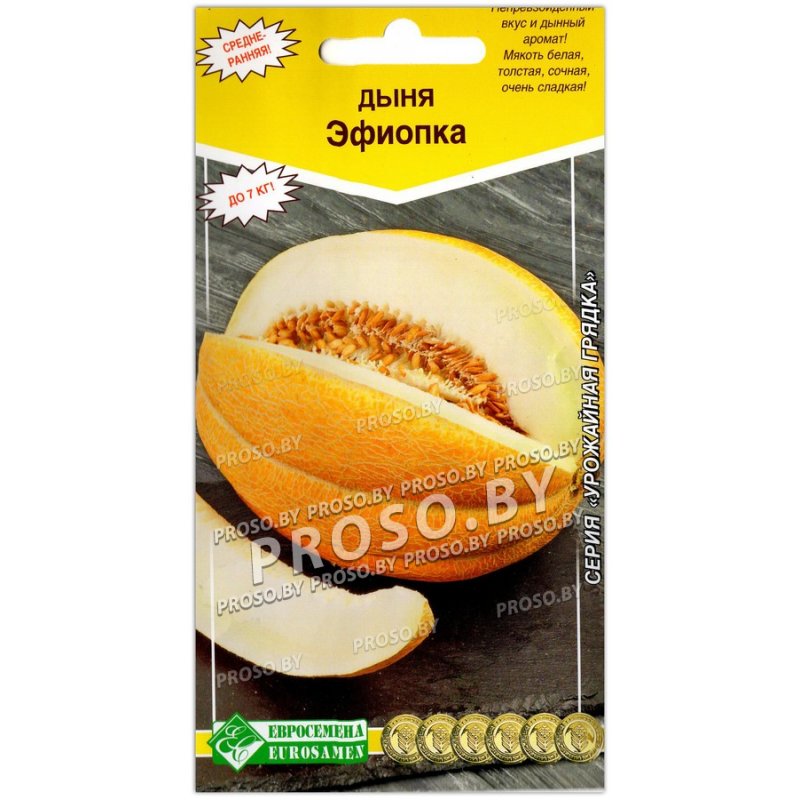 Выведен сорт селекционерами России, поэтому в условиях климата страны он произрастает успешно. Сорт популярен среди садоводов. Его выращивают повсеместно в открытом грунте. Эфиопка обладает необычайно сладким вкусом, это одна из самых ароматных дынь. Особенностью вегетации Эфиопки является самоопыление, так как на побегах с мужскими цветами соседствуют женские. Этот сорт превосходно переносит засуху и агрессивные жгучие солнечные лучи, на ней не образовываются ожоги или раны. Куст не широкий, не имеет длинных ветвей. Одно растение при носит около 5 плодов весом 4-6 кг Плоды можно снимать уже спустя 80 дней после посадки. Хранится этот сорт до 1 месяца. Толстая кожура помогает перевозить дыню без повреждений и потери вкуса. Сорт дыни Эфиопка буквально за считанное время получил всеобщую любовь дачников.