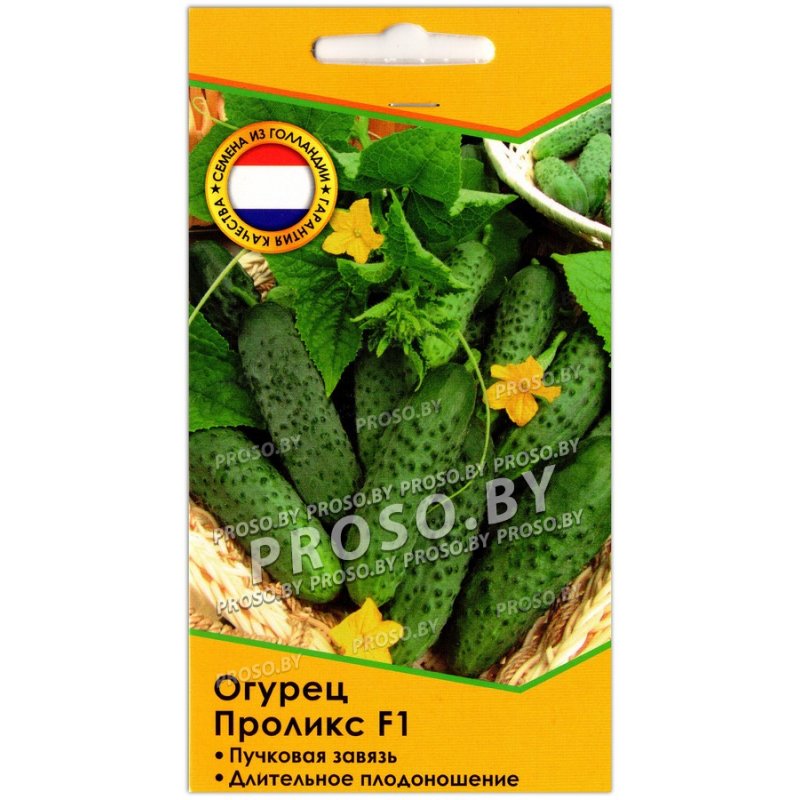 Высокоурожайный, неприхотливый, партенокарпический гибрид для теплиц и открытого грунта. Для выращивания в весенний и осенний периоды. В первую очередь от многочисленных гибридов на рынке он отличается очень длительным и обильным плодоношением и отменным вкусом. Гибрид Проликс стойко выдерживает напасти грибковых и вирусных болезней, и что немаловажно прекрасно адаптируется к стрессовым погодным условиям. Какая бы не стояла засуха это растение не пострадает и останется зеленым. А сочные и ароматные плоды приятно поражают своим вкусом любого покупателя. Зеленцы этого гибрида идеально красивые внешне, и невероятно вкусные внутри! На 38-42 день можно собирать сладкие и очень вкусные огурчики. Растение мощное, с короткими междоузлиями и пучковым заложением завязей (3-5 штук в узле). Плоды выровненные, правильной цилиндрической формы, длиной 9-12 см, массой 75-90 г., насыщенно-зеленого окраса, с глянцевой, тонкой кожицей, крупно-бугорчатые, опушение белое. Не перерастают, не бочкуются и не выкручиваются даже при сильной жаре. Огурчик не имеет пустот, не горчит, семенные камеры небольшие. Мякоть пло-ная, сочная, хрустящая, с маленькой семенной камерой, без горечи. Зеленцы прекрасно подойдут для приготовления салатов, овощной нарезки, консервирования и маринования. Для переработки, этот огурец просто идеальный и незаменимый. Гибрид плодоносит в любых условиях выращивания, устойчив к основным болезням огурца. Растение успешно противостоит множеству заболеваний, как вирусных, так и грибковых, стой ко переносит даже напасть клопов и паутинного клеща, благодаря своей высокой склонности к регенерации.