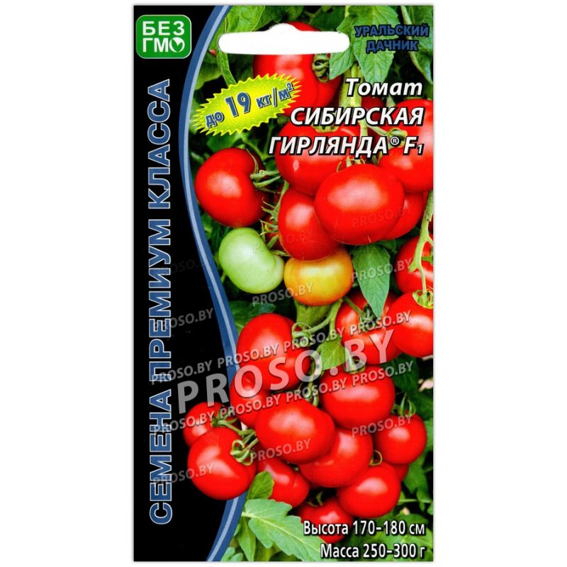 Экстремально ранний гибрид, период от всходов до начала созревания 90-95 дней. Растение мощное, высотой 170-180 см, формировать следует не менее чем в 2 ствола. Первая кисть закладывается над 6-м листом, последующие через 2-3 листа. Кисть с 6-8 плодами, на растении формируется 10-11 кистей – всё это великолепие выглядит просто завораживающе, кисти как настоящие гирлянды с яркими плодами. Плоды интенсивно красной окраски, округлые, гладкие, плотные, массой 250-300 г, сочетающие наивысшие вкусовые качества с транспортабельностью. Урожайность стандартных плодов умопомрачительная 17-19 кг/м². Рекомендуется для получения ранней продукции в плёночных теплицах и открытом грунте в шпалерной культуре.