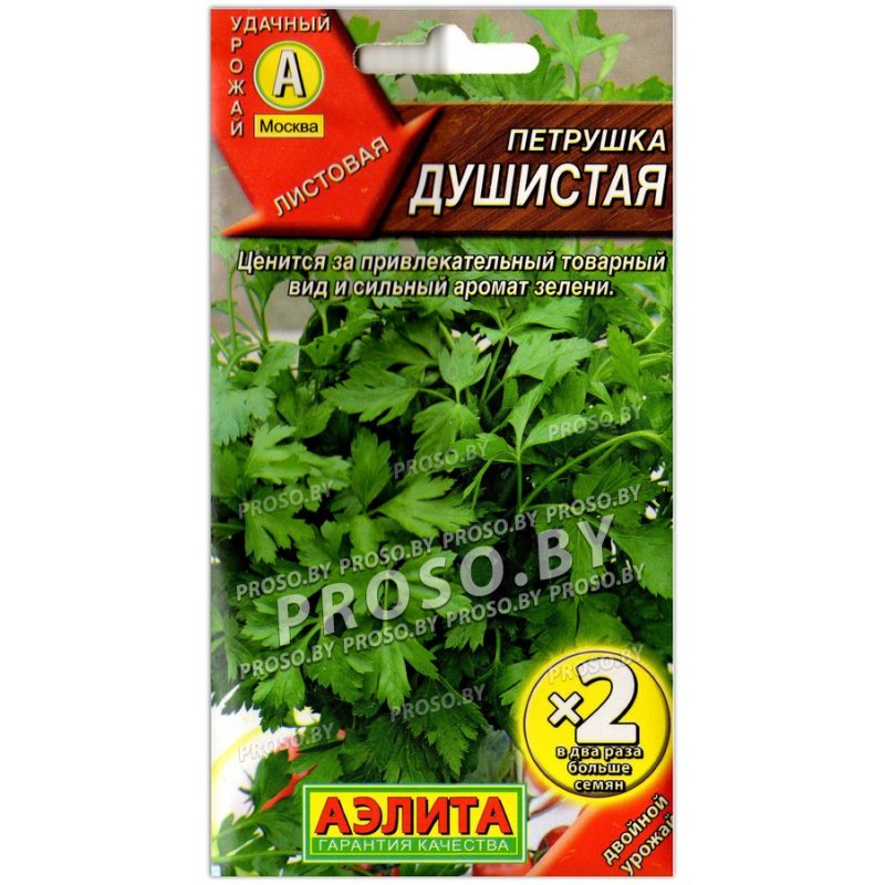 Гладколистный сорт для открытого и защищенного грунта. Пользуется спросом за привлекательный товарный вид и сильный аромат зелени. Раннеспелый, период от всходов до первой массовой срезки зелени 55-60 дней. Розетка крупная, полураскидистая. Количество листьев в розетке от 30 до 50 в зависимости от возраста. Листья среднего размера, хорошо отрастают после срезки. Срезанная зелень сохраняет хорошее качество в течение недели. Сорт пригоден для получения пучковой продукции.