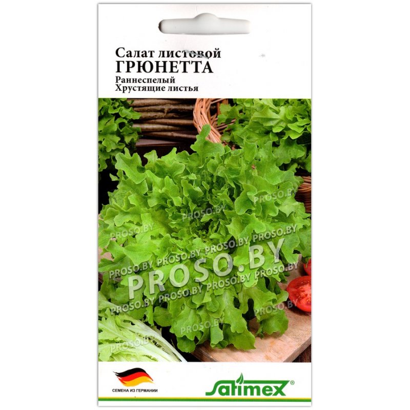 Сорт листового салата от компании Satimex, характеризующийся ранним созреванием, хрустящими волнистыми листьями без горечи и устойчивостью к болезням. Салат листовой Грюнетта — ранний урожайный листовой салат (35 дней от всходов) с зелёными волнистыми хрустящими листьями, сочными, без горечи. Вес одного растения 200–250 г. Розетка листьев плотная, полуприподнятая. Листья крупные, сочные, хрустящие, светло-зелёного цвета. Вкус сладковатый, при перерастании листья не горчат. Отличается очень быстрым нарастанием листовой массы. Стойкий к болезням и образованию цветоноса. Прекрасно растёт в открытом и защищённом грунте. Для выращивания с весны до осени. Используют свежим для украшения блюд, бутербродов, тушат со сметаной, сыром, яйцом.